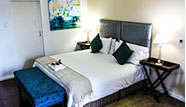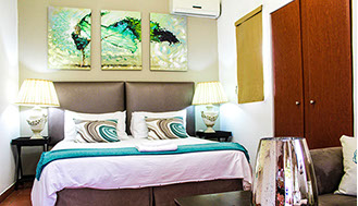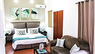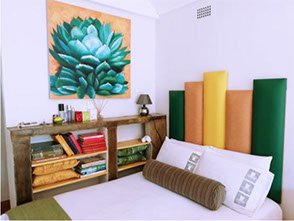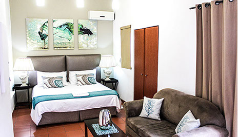 Self catering room with twin or king bed and a double sleeper couch. Unit 2 has a kitchenette and a small private garden. The unit can accommodate a maximum of 2 adults and 2 children.